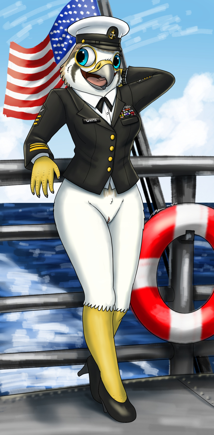 Tags: absurd resanthrobottomlessclothedclothingevy (fish birb)femalefish birbfootweargenitalshi reshigh heelsimageboardnavynavy hatno underwearpartially clothedpussyRule34seashipsolou.s. navyvehiclewaterwatercraft