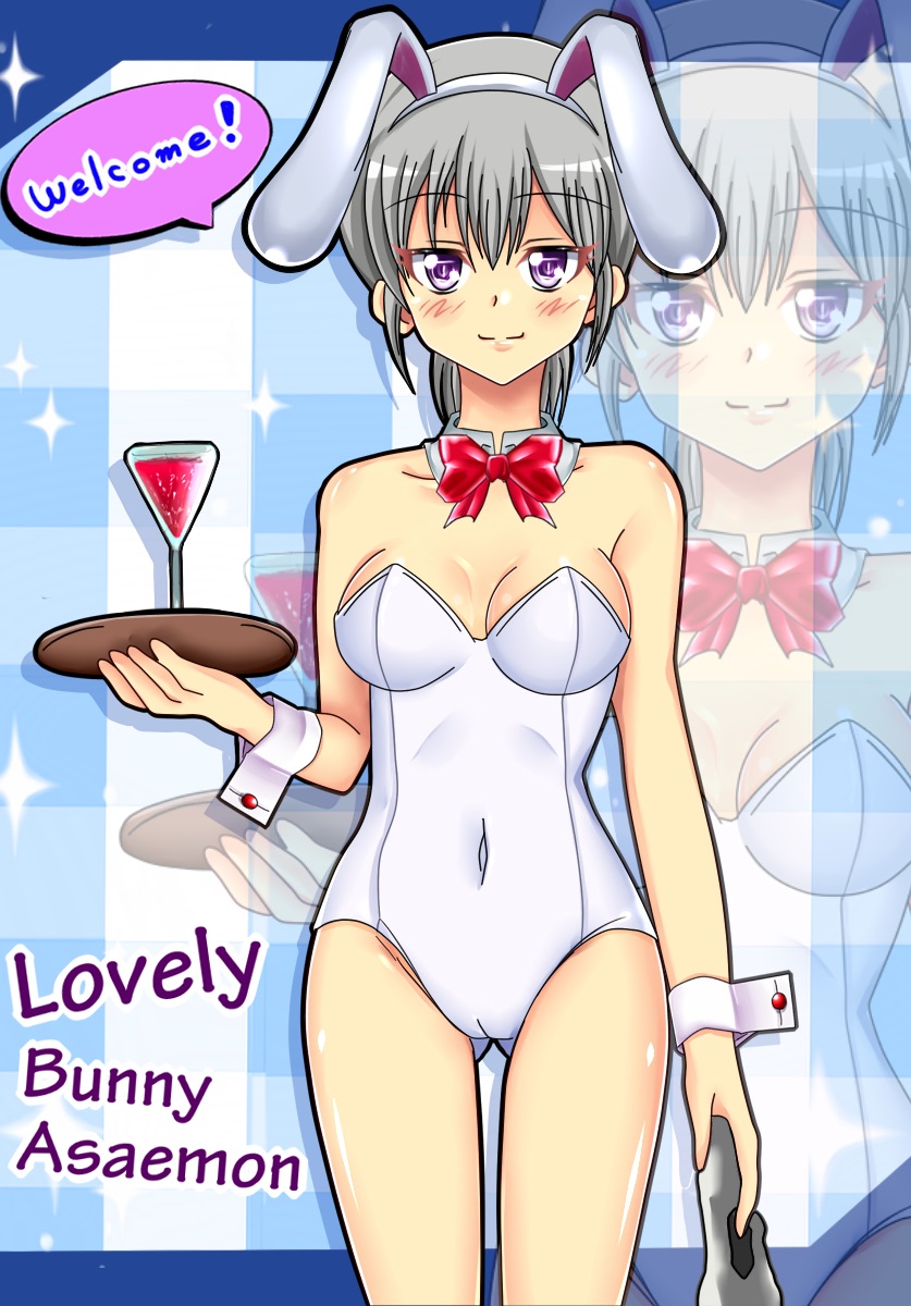 Tags: alternate version availableblushbowtiebunny earsbunnysuitcameltoecleavagecowboy shotdetached collarenglish textfemalefemale onlygintamagrey hairikeda asaemonimageboardleotardlooking at viewerneck ribbonpurple eyesRule34shigukoshort hairsmall breastssmilesolospeech bubbletraywhite leotardwrist cuffs