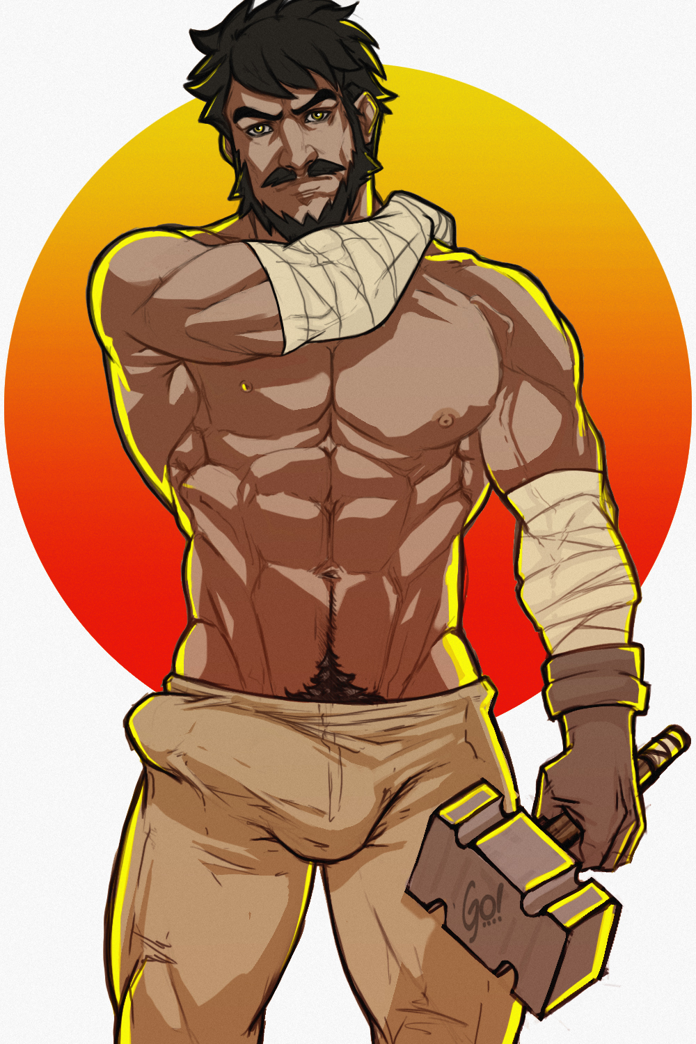 Tags: ballsbarabeardblack hairbonerbulgeerectionerection under clothesfacial hairgenshin impactglovesgolewdgohammerimageboardmalemale onlymusclesmuscularpenisRule34shirtlesssolosolo malewagner (genshin impact)