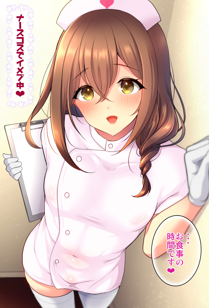 Tags: 1boyblushblush linesblushingblushing at viewerbrown eyesbrown hairbulgeclipboardcrossdressingdressfemboyfemininefeminine malegirlygloveshair between eyeshathearthi reshigh resolutionhighresholdingholding clipboardimageboardlight skinlight-skinned malelooking at viewermale focusmenokonomenursenurse capnurse uniformopen mouthoriginalotoko no koRule34shinyshiny clothesshiny hairshiny skinshort sleevessolospeech bubblespoken heartthighhighstonguewhite dresswhite gloveswhite thighhighs