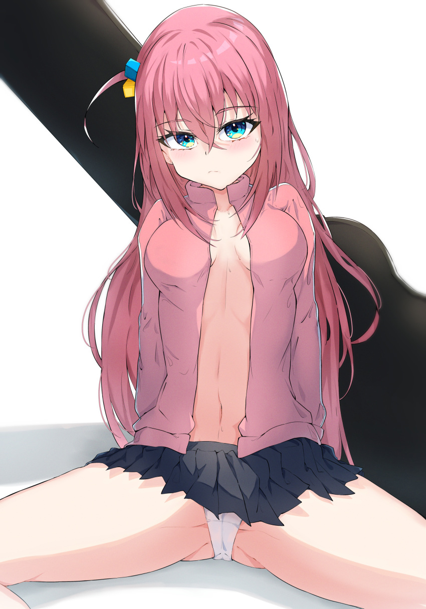 Tags: ass visible through thighsblue eyesbocchi the rock!cameltoeexposed breastsgotou hitorihair ornamentimageboardjacketjacket opennavelpantiespink hairRule34skirtthighs