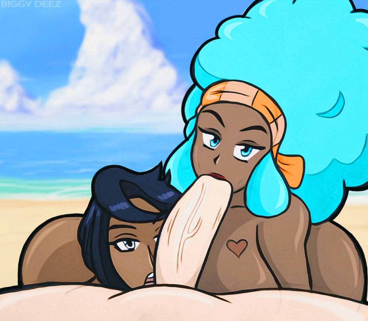 Tags: 1boy2girlsafrobeachbiggy deezblack hairblue eyesblue hairdark skindark-skinned femaledouble blowjobdouble fellatioffm threesomegray eyeshairbandimageboardinterraciallenora (pokemon)light skinlight-skinned malelipsticklooking at viewernintendoolivia (pokemon)oralpokemonqueen of heartsRule34threesome