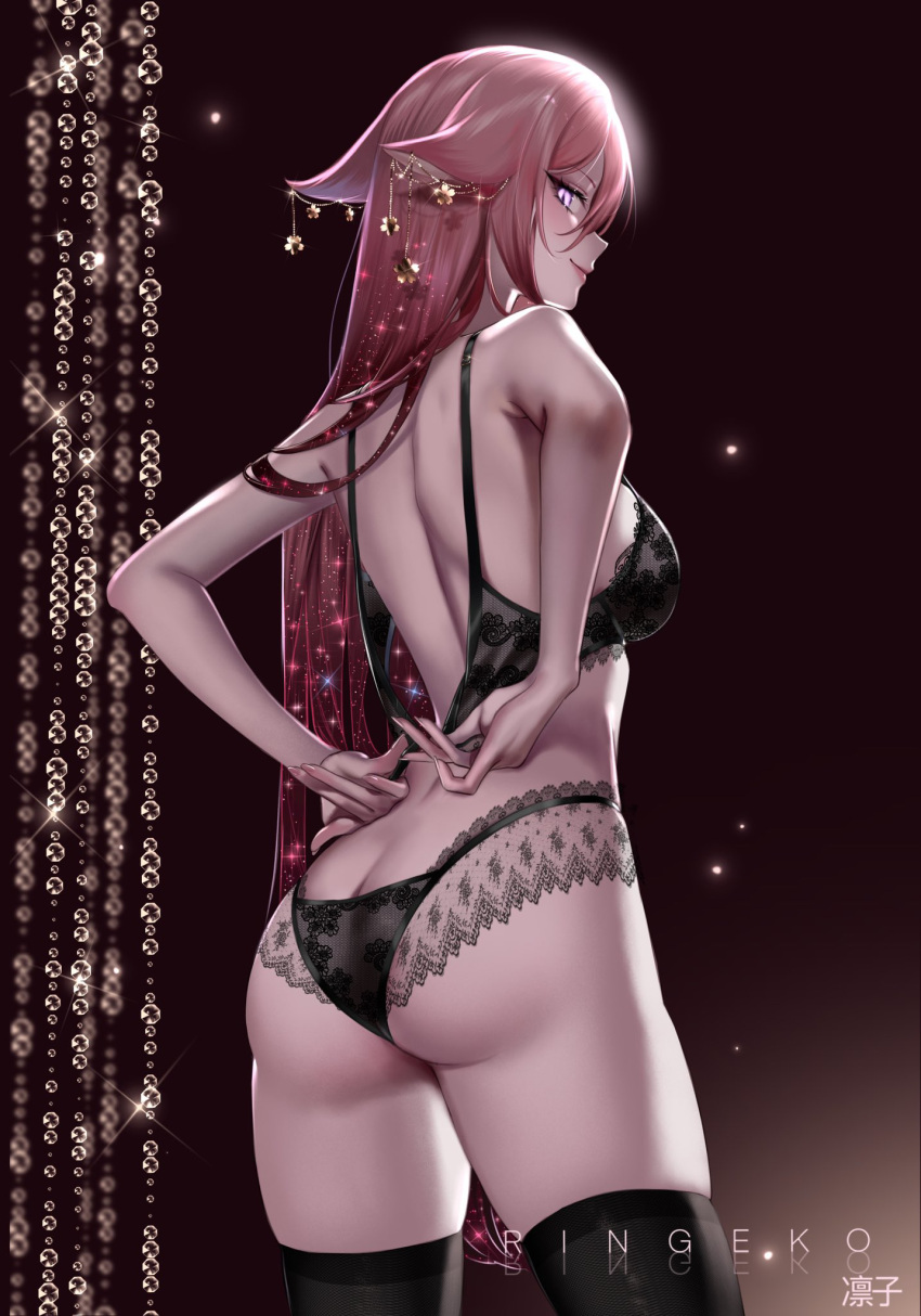 Tags: 1girlsanimal earsassbackblack brablack legwearblack lingerieblack pantiesbraear accessoryfemalefemale onlygenshin impacthighresimageboardkneesockslegwearlight-skinned femalelingerielong hairlooking at viewerpantiespink hairpurple eyesremoving braremoving clothingringeko chanRule34seductivesmilesolostandingstockingsthick thighsthighhighsthighsunderwearundressingvery long hairyae miko