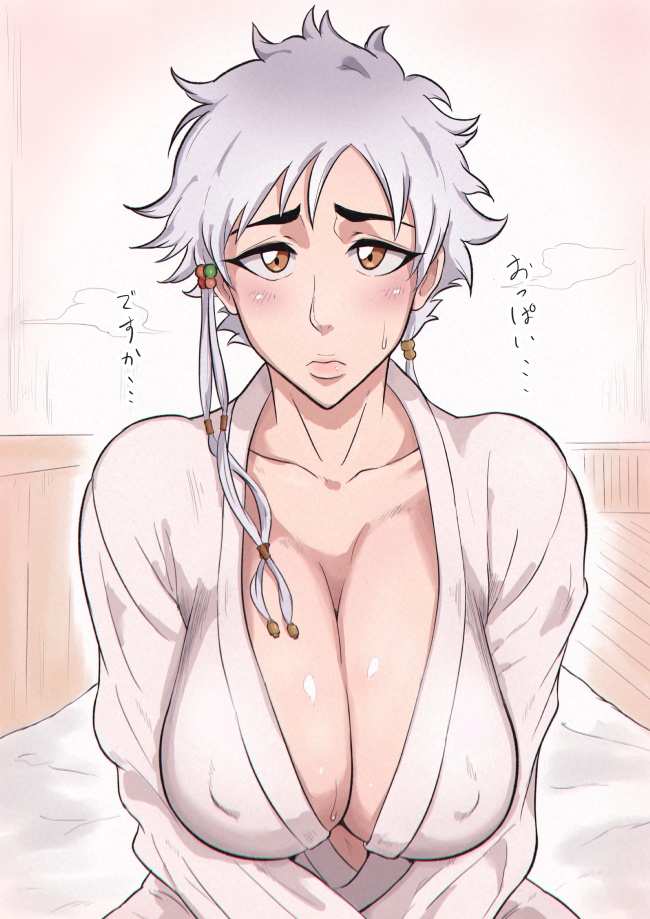 Tags: 1girlsashamedasymmetrical bangsasymmetrical hairbangsbare chestbig breastsbleachblushbraidsbreastsbrown eyesbustycleavageclosed mouthclothed femaleclothingcollarboneembarrassederect nippleserect nipples under clotheshanging breastshuge breastsimageboardkakisukimonokotetsu isanelarge breastsoppaipresentingpresenting breastsrobeRule34sagging breastsshort hairshort hair with long locksshysilver hairsweatsweatdropupper bodywetwet bodywet skin