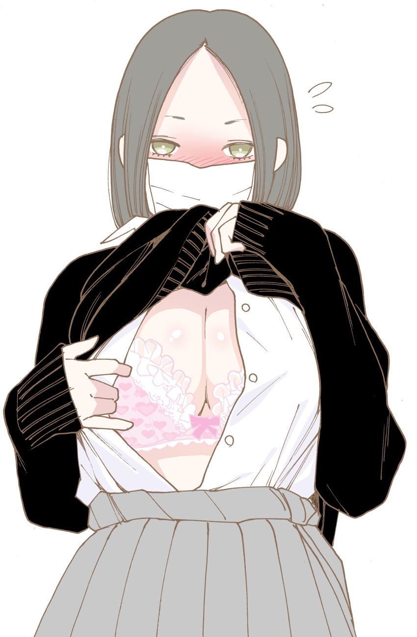 Tags: 1girlsbracleavageface maskgray hairimageboardkishi torajirolarge breastslooking at vieweropen clothespresentingpresenting breastsRule34solosurgical masksweater lift