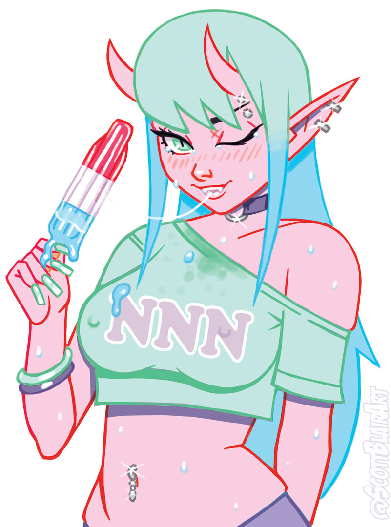 Tags: 1girlsbraceletchokercollardemondemon girldevildevil girlfangsgreen eyesgreen nailshornsimageboardlooking at viewernail polishnipple bulgenipples visible through clothingno nut novemberoriginal characterpiercingpiercingspink skinpopsicleRule34scott blairsolo femalesweatsweatingsweaty bodywet clotheswet skinwinkingwinking at viewer