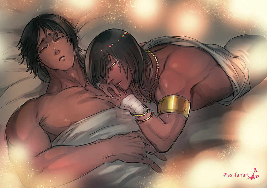 Tags: 2boysarmletblack hairbraceletdark hairdark skindark-skinned malegaolang wongsawatgaygold (metal)gold jewelryimageboardintimatejewelrykengan (series)kengan ashuralooking at viewerlying on personmalemale onlymuscularmuscular malenecklaceon backon stomachrama xiiiromanticromantic ambianceRule34sleepingsmiless fanartyaoi