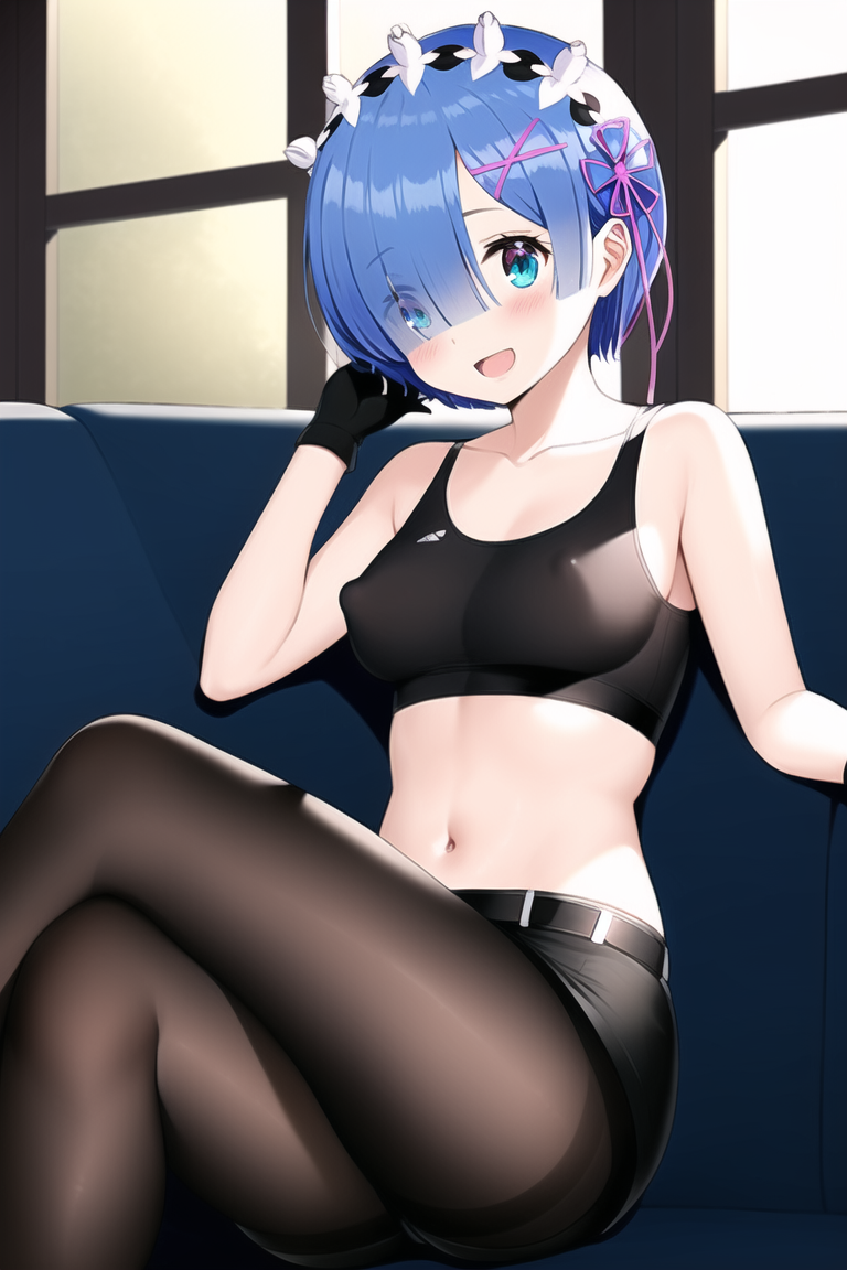 Tags: ai generatedbare shouldersblack glovesblue eyesblue haircrossed legsgloveshair over one eyeheadwearimageboardlooking at viewermaid headdressmidriffnai diffusionnipplesopen mouthpantyhosere:zero kara hajimeru isekai seikatsurem (re:zero)Rule34see-throughshort hairshort shortssittingsmall breastssmilesports brastable diffusion