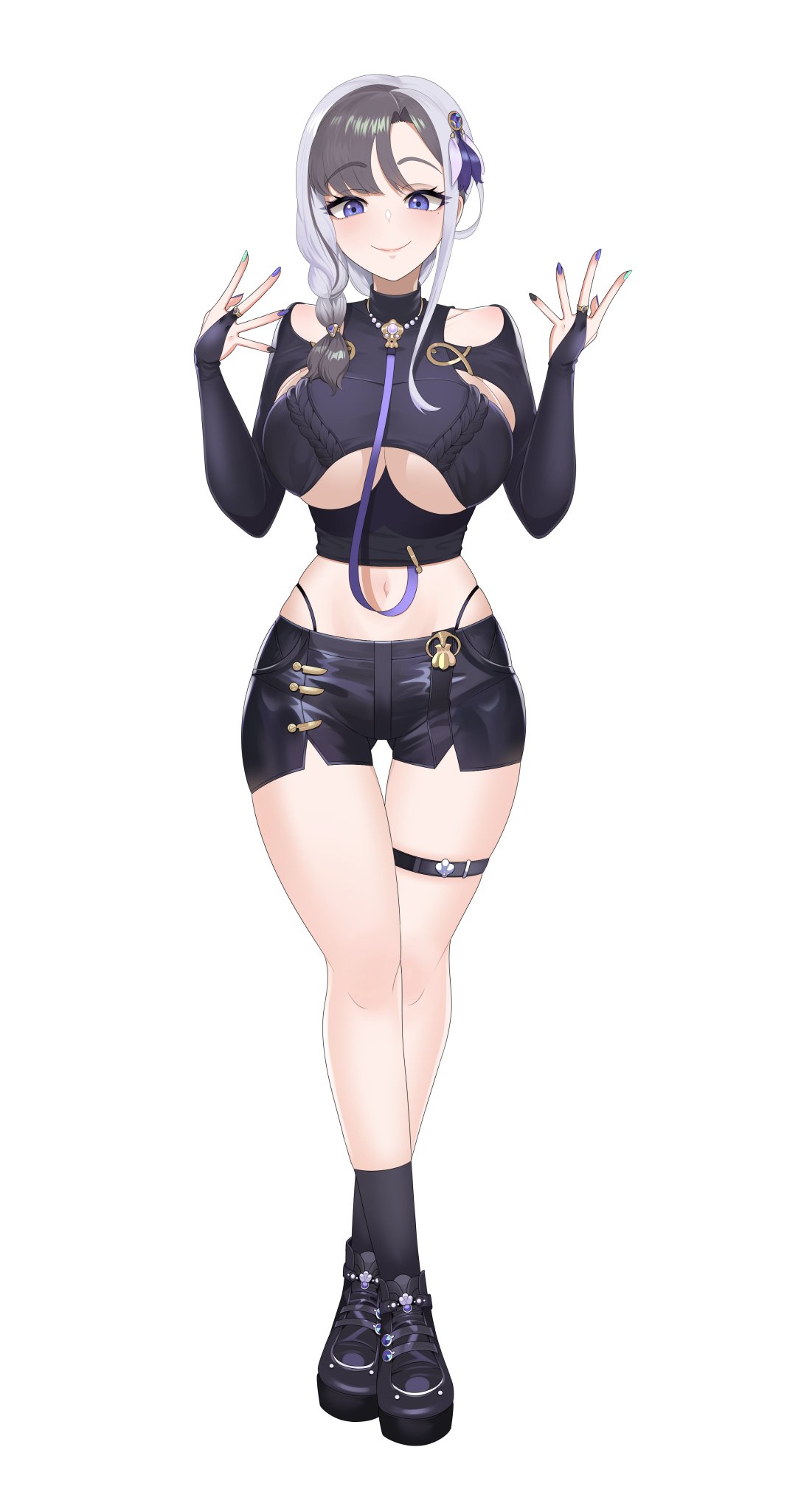 Tags: 1girlsazarashi hapubelly buttonbig breastsblack hairblack nailsblue eyesboob windowdraw430green nailsimageboardjewelrylight skinlight-skinned femalelooking at viewermulticolored nailsnecklacepurple nailsRule34shoessimple backgroundsmilesolothick thighstwo tone hairunderboobv-llagevirtual youtuberwhite background