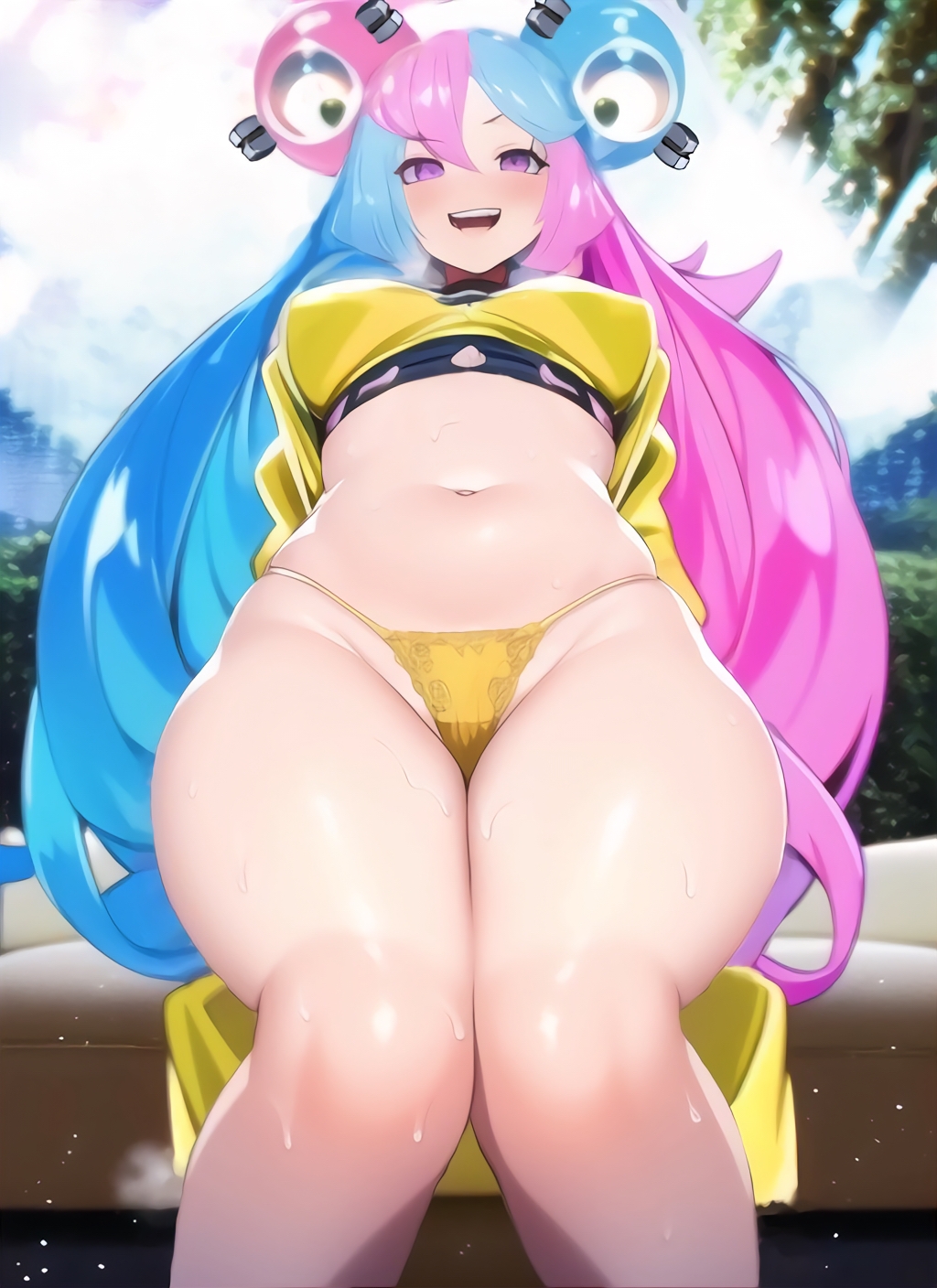 Tags: 1girlsai generatedblue hairblushbreastscharacter hair ornamentcouchgame freakgym leaderhappyhappy femaleimageboardiono (pokemon)jacketlooking at viewernai diffusionnavelnecklaceon couchpetitepink eyespink hairpokemonpokemon svRule34sharp teethsmall breastssmilestable diffusionsweattwintailstwo tone hairunderwearyellow panties
