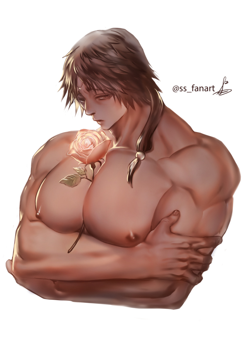 Tags: big pecsbrown haircircletcleavagecrossed armsflowergaolang wongsawatimageboardkengan (series)kengan ashuralong hairlong hair malelooking at viewerlow ponytailmalemale onlymuscularmuscular maleobject between breastspecsponytailroseRule34soloss fanarttan skintied hairtoplesstopless maleupper body