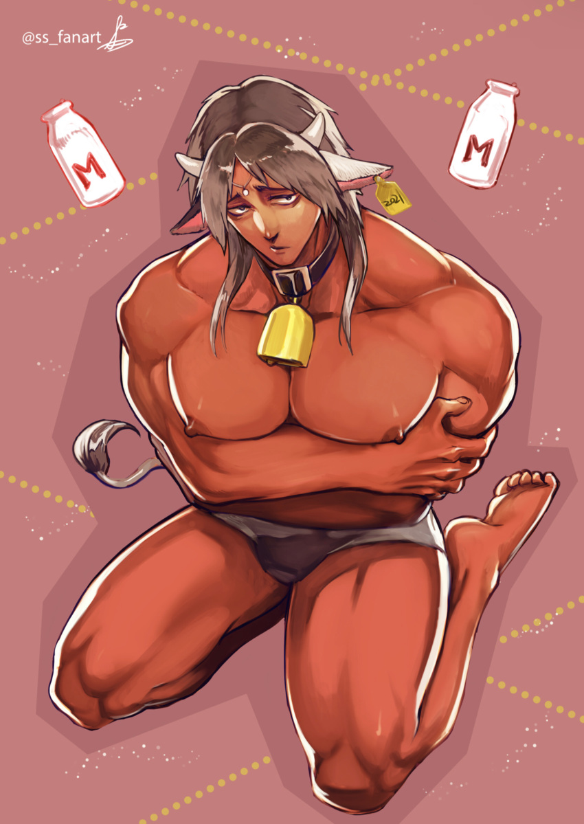 Tags: barefootbig pecsbrown haircircletcollarcow boycow earscow hornscow printcow tailcowbellcrossed armsear tagfull bodygaolang wongsawathair downhigh-angle viewimageboardkemonomimikengan (series)kengan ashuralong hairlong hair malelooking at viewermalemale onlymuscularmuscular malemuscular thighspecsRule34sittingsoloss fanarttan skintoplesstopless maleunderwear