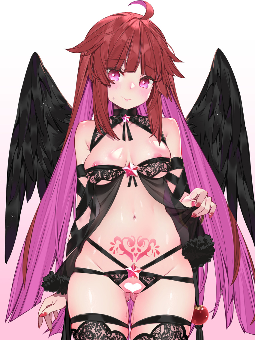 Tags: 1girlsahogeass visible through thighsbreastsclosed mouthcolored inner hairfemalefemale onlyfingernailsgradientgradient backgroundhighresimageboardlong hairlooking at viewermedium breastsmulticolored hairnail polishnaveloriginalpink backgroundpink eyespink hairpubic tattoored hairred nailsRule34smilesolostar (symbol)star-shaped pupilssymbol-shaped pupilstattoothighswaterringwhite background