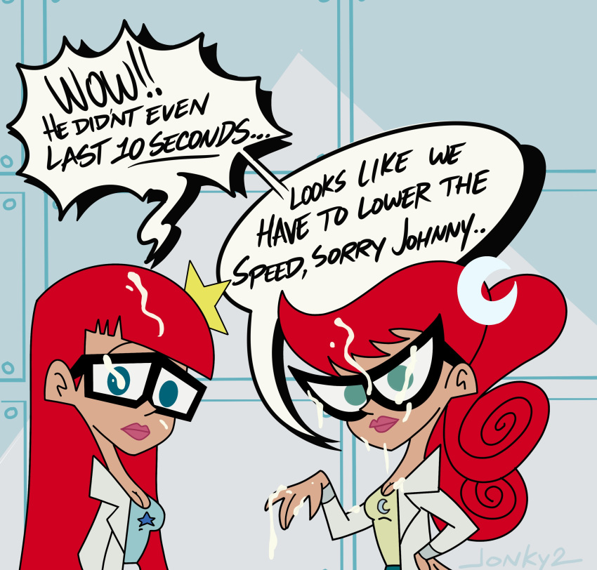 Tags: 2girlsclothedcovered in cumcumcum in haircum on facecumshotdialoguefully clothedglasseshairimageboardjohnny test (series)mary testredRule34speech bubblesusan testtest twinstext