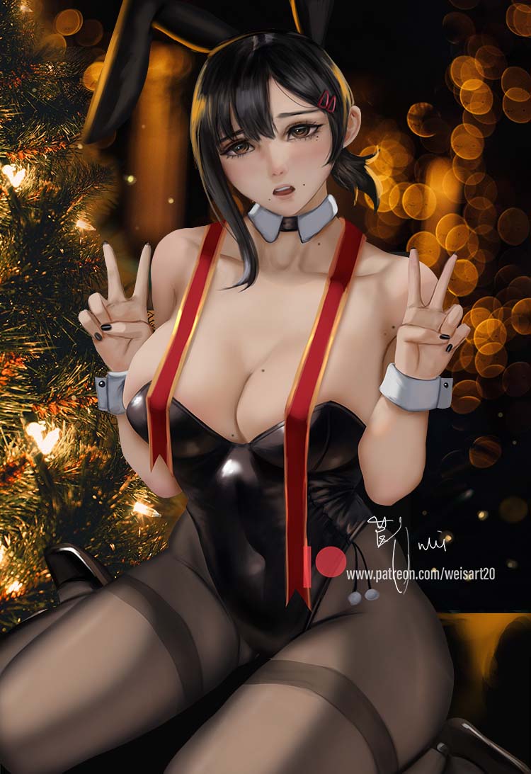 Tags: 1girlsbig breastsbunny earsbunnysuitchainsaw manchristmaschristmas treecleavagedouble vfemalefemale onlyhigashiyama kobeniimageboardmappapeace signRule34stockingsvweisart