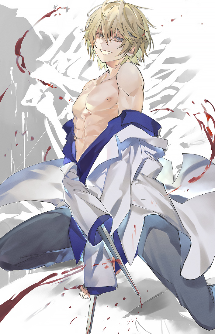Tags: absbarefootblonde hairbloodblue eyesdoctorhanafusa hajimeimageboardk shisyokengan (series)kengan ashuralabcoatlooking at viewermalemale onlynon-nudeoff shoulderopen clothesopen jacketopen shirtpartially undressedRule34smilesoloswordtonedtoned maleweapon