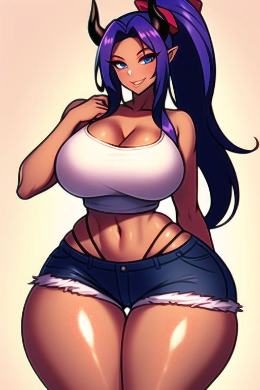 Tags: ai generatedbig breastsbig thighsblue eyescurvycurvy figuredemon girlgigantic breastshuge breastshuge hipsimageboardlooking at viewernai diffusionorange skinponytailpurple hairRule34seductive smileshiny breastsshiny hairshiny skinshiny thighsshort shortsstable diffusionthick thighsthunder thighsvoluptuouswhite tank topwide hips