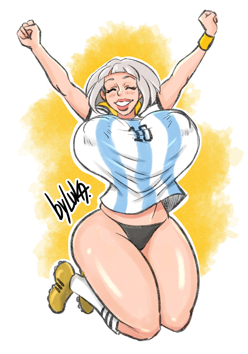 Tags: 1girlsargentinaarms upbig breastscelebrationclosed eyesfootball uniformimageboardjumpjumpinglukaforyounipple bulgeno pantspartially clothedRule34smilethong