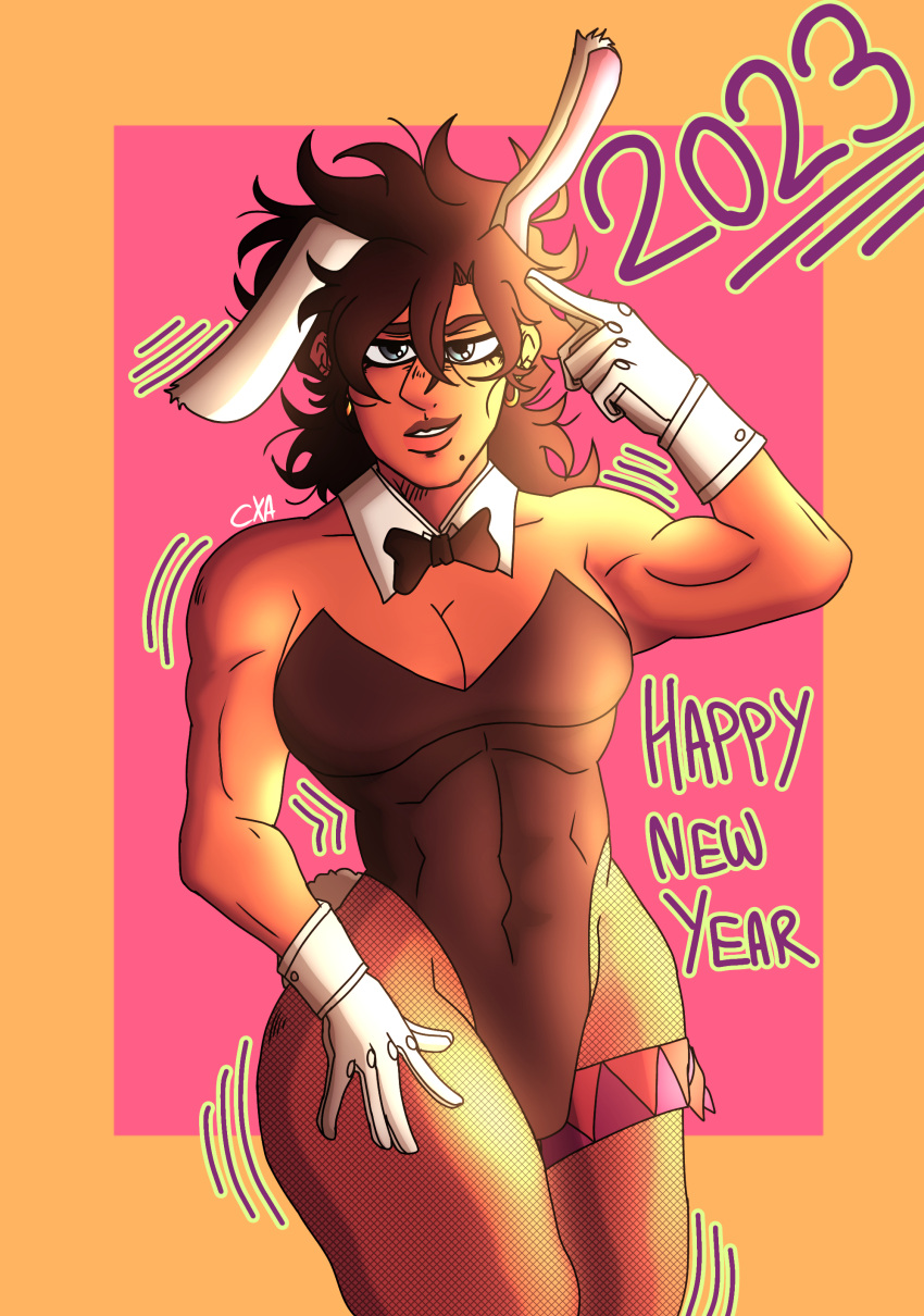 Tags: brown hairbrown skinbunnysuitchromexorannexcleavagecoco joestarfishnetshappy new yearimageboardmolemuscular femaleoriginal characterourobouroRule34smirking at viewerthighstoned femaleyear of the rabbit