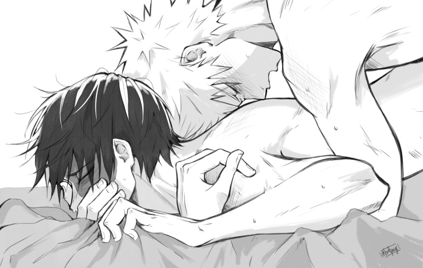 Tags: 2boysblack and whiteclosed eyescovering mouthgay dominationgrabbing sheetsimageboardimplied analimplied sexkatsuki bakugoulying on personlying on stomachmalemale onlymy hero academiaon stomachopen mouthpassionateRule34sheet grabshouto todorokispiky hairyaoi
