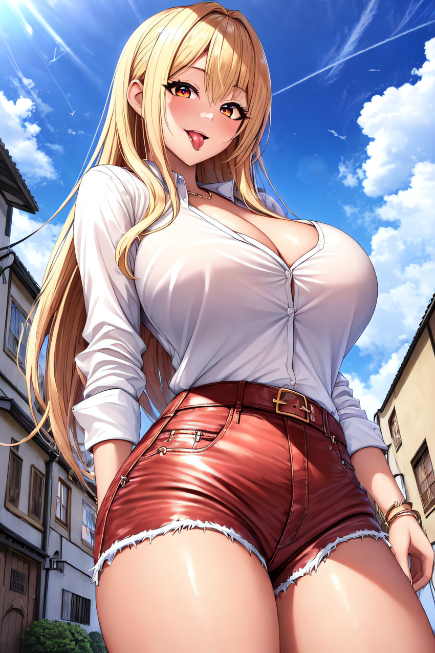Tags: 1girlsai generatedblonde hairbooty shortsbreastsclothedfemalegyaruhuge breastsimageboardkitagawa marinlarge breastslight skinlight-skinned femalelong hairlooking at viewernaughty faceoutdoorsred eyesRule34short shortsshortsslim waistsmilesono bisque doll wa koi wo surustable diffusionthick thighswide hips