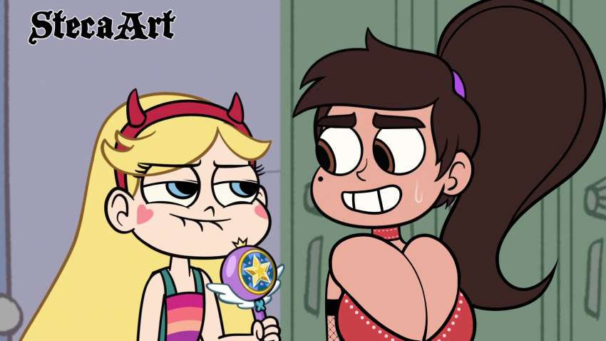 Tags: big breastsbig hairblonde femaleblonde hairblue eyesbrown eyesbrown hairbrunettechokercleavagecleavage overflowclothedfishnet armweargenderswapheadbandheart cheeksimageboardlocker roomlockerslong hairmagic usermagic wandmagical girlmarco diazmolemole under eyenervous sweatnon-nudeoverflowing breastsponytailrule 63Rule34screencapscreenshotscreenshot editsmug facestar butterflystar vs. the forces of evilstecasweatthelazyart