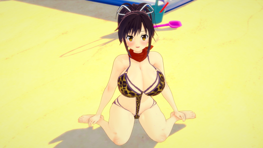 Tags: alternate costumeasuka (senran kagura)beachbeach matbikiniblushhair ribbonimageboardlarge breastsleopard printRule34senran kagurashy smilesunsetxhion24