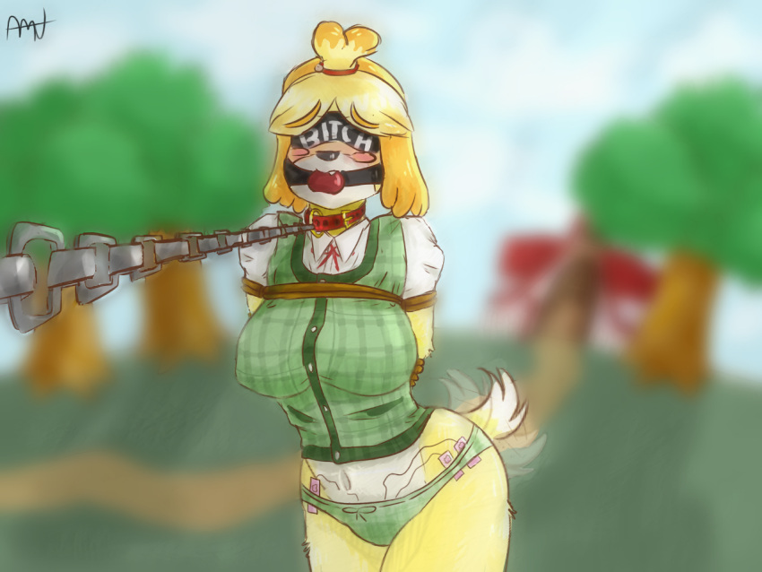 Tags: 1girlsanimal crossinganthroarms behind backartist signatureazumuku-chanball gagblindfoldblonde hairblushbondagebound armscaninechain leashdegradationfangsfemalefemsubfurfurrygaggaggedimageboardisabelle (animal crossing)leash pulloffscreen characteroutdoorspantiespetplaypublic exposurepublic indecencyroperope bondageRule34tailtailwagunseen charactervibratorvibrator in pussyvibrator under pantiesyellow fur