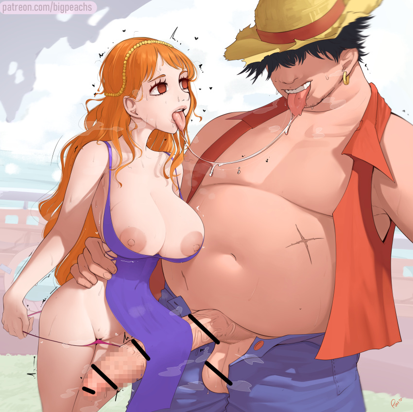 Tags: 1boy1girlsafter kissbig ballsbig breastsbig penisbigpeachsbreasts outcensoredclothingdemalo blackdressdroolhuge cockimageboardimminent sexkissinglarge breastslong hairmosaic censoringnamione pieceorange hairpantiespanties downpuririn (puririiin)Rule34salivasaliva trailtongue outtrembling