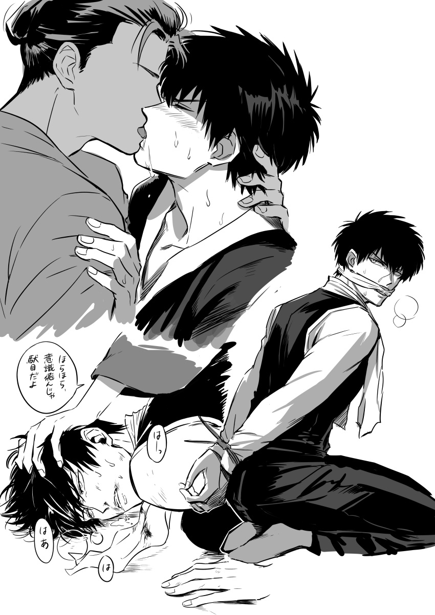 Tags: 2boysarms behind backbloodblushbondagebound wristsclenched teethclosed eyesdefeatedfrench kissgaggaggedgintamahand on another's headhead grabhijikata toshiroimageboardimplied rapeimplied sexjapanese textkissinglooking backmalemale onlymonochromemultiple scenespinnedpinned downpolice officerpolice uniformquestionable consentrestrainedRule34shinsengumi (gintama)shiosakisolo focusspeech bubblesweatuniformyaoi