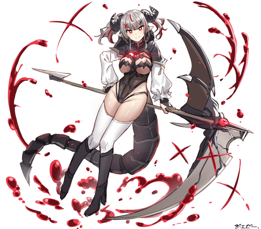 Tags: 1girlsartsjeze (jeze)blooddragon girldragon tailheart-shaped pupilshornsimageboardlight skinlight-skinned femalelucia/ルーシア (artsjeze)monster girloriginalpointy earsRule34scythesmilesymbol-shaped pupilstail