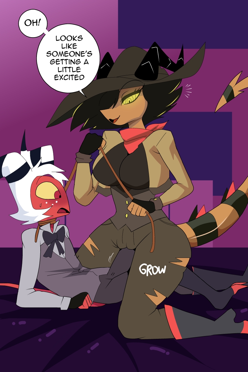 Tags: 1boy1girlsbedblack hairbreastsbulgecarliabotclothedcowboy hatdialogueerectionerection under clothesfemale on topfemdomhelluva bosshornsimageboardimminent seximplassomoxxie (helluva boss)rule 63Rule34straddlingstriker (helluva boss)tailtextwhite hairyellow eyes