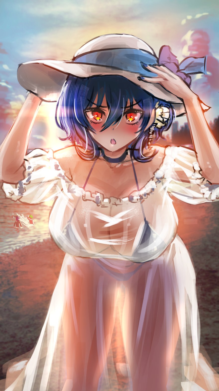 Tags: 1girlsaetheria project (cyberlive)annoyedbeachbikiniblue hairblushhatimageboardlight skinlight-skinned femalelooking at viewerminsterpdukeorange eyesoumiya emma (vtuber)outsideRule34see-through clothingsun hat