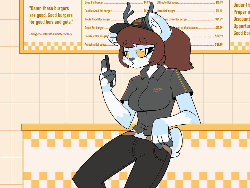Tags: 2020animatedanthroblue furbreastsbrown haircolordeerdigital media (artwork)fast foodfast food uniformfemaleflashingfrecklesfurfurryimageboardlane (kilinah)leaning backno braocoriginal characterphoneponytailpublicpublic nudityRule34smiletextingundressingwhygena