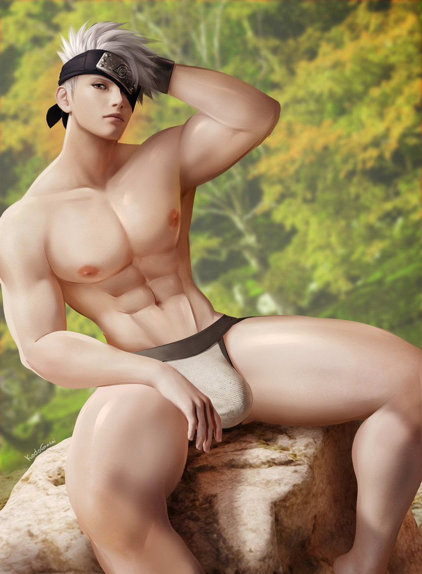 Tags: 1boybig pecsblack bandanablack glovebrown eyesforest backgroundimageboardmale focusmale onlymuscular malepectoralsRule34sittingwhite hairwhite panties