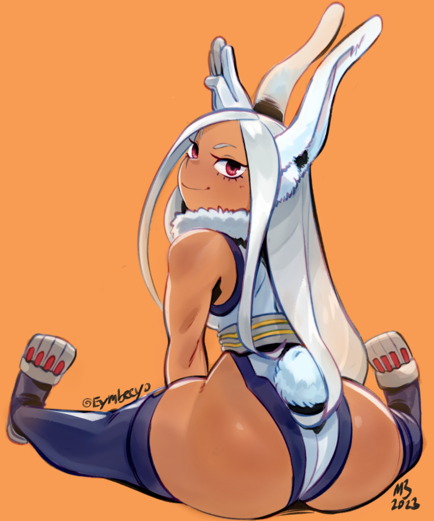 Tags: 1girlsassbunny earsbunny girlbunny taildark skindark-skinned femaleeymbeefemalefemale onlyhi resimageboardleotardlong hairlooking at viewerlooking backlooking back at viewermirukomy hero academiaorange backgroundpink eyesrear viewRule34rumi usagiyamasittingsmilingsmiling at viewersolothick thighswhite hairyear of the rabbit