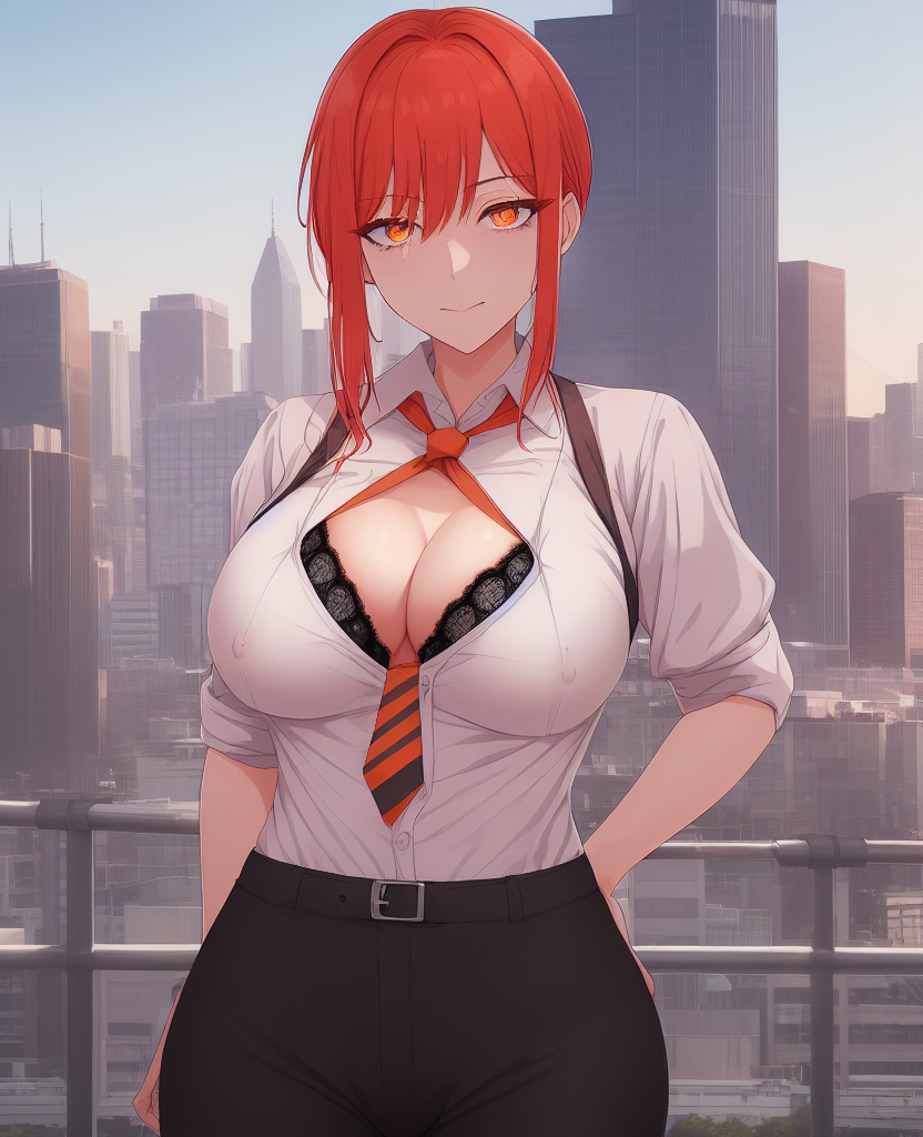 Tags: chainsaw mancleavage cutoutcollared shirtimageboardlingeriemakima (chainsaw man)nai diffusionnecktieorange eyesred hairRule34stable diffusiontight clothing