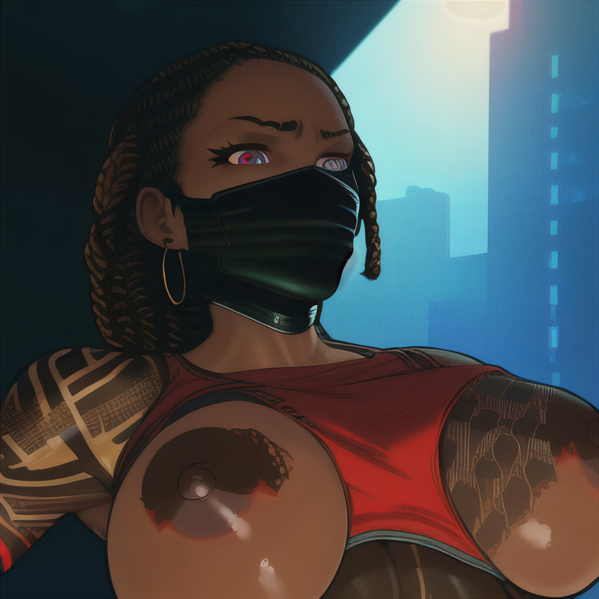Tags: 1girlsai generatedai upscaledarm tattooblack hairbreast tattoobreastsdark skinearringeditedfemalefemale onlyheterochromiaimageboardlarge breastsmaskmaskedmasked femalepartially clothedpartially clothed femaleRule34stable diffusionstandingtattootattoo on armtattoo on breasttattooed armtattooed breasttattoos