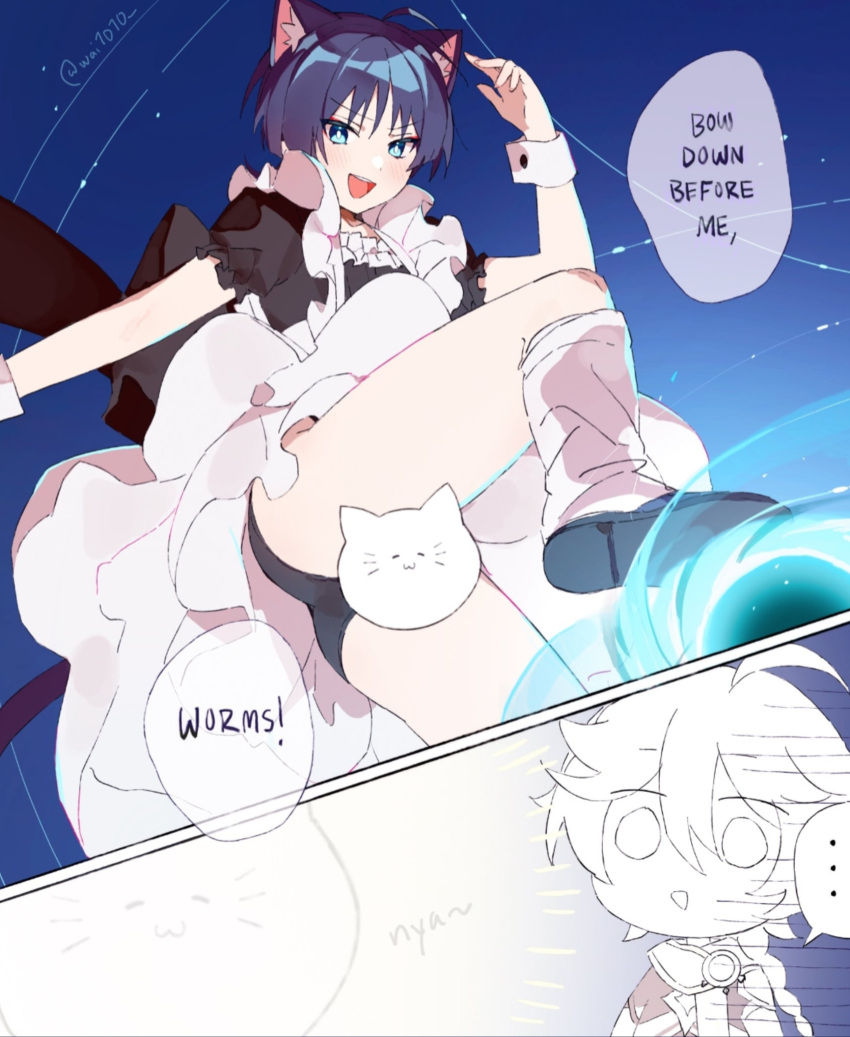 Tags: aether (genshin impact)cat earscat taildegradationexposed assfemboygenshin impactgirly boyimageboardmaid outfitotoko no kopurple eyespurple hairRule34scaramouche (genshin impact)steppingtagmetrap