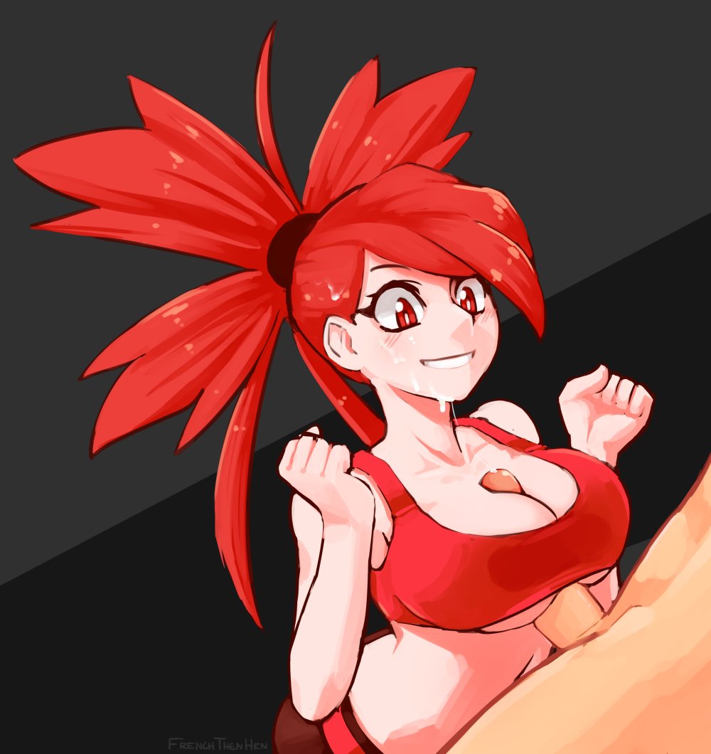 Tags: 1boybare armsblushbreastscleavagecumfacialfemaleflannery (pokemon)frenchthenhengrinimageboardlarge breastspaizuripantspenispokemonpokemon (game)red eyesred hairred tank topRule34smilesolo focusstraighttank top