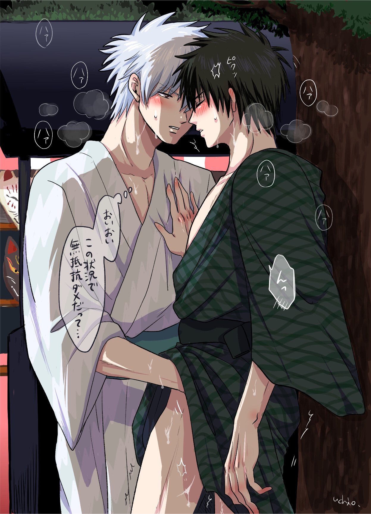 Tags: 2boysalternate costumeblack hairblushgaygintamagintoki sakatagropinghand under clotheshijikata toshiroimageboardjapanese clotheskimonokimono liftlooking at anothermalemale onlyoutsidepublicRule34silver hairstealth sexsweetuchio55white hairyaoiyukata