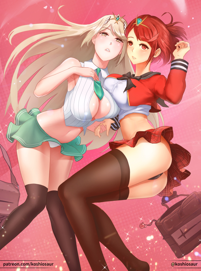 Tags: 2girlsblack pantiesblonde hairbreastshand on chestholding handsimageboardkoshiosaurlarge breastslong hairmidriffmythranavelnecktienintendopantiespyrared eyesred hairRule34school bagschool uniformshort hairskirtthighhighstiaraupskirtwhite pantiesxenoblade (series)xenoblade chronicles 2yellow eyes