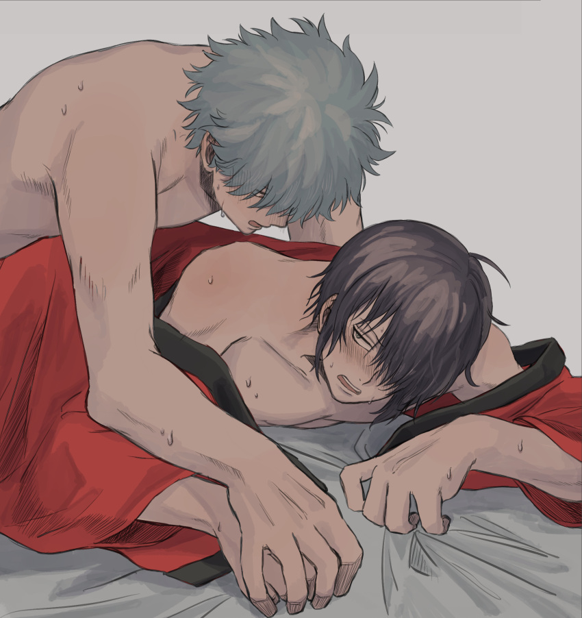 Tags: 2boysblushfrom behindgintamagintoki sakatahair over one eyeholding handsimageboardimplied analimplied sexk1 mrckimonolooking at anotherlooking backmalemale onlyoff shoulderon bedon stomachprone bonepurple hairRule34silver hairsweattakasugi shinsuketoplesstopless maleyaoi