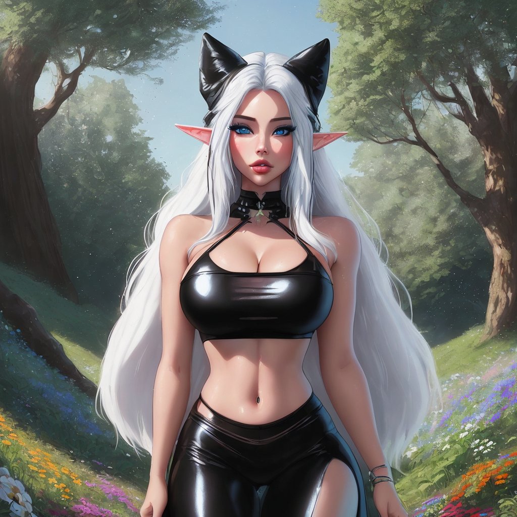 Tags: 1girls2023ai generatedbig breastscat earscleavagecurvy femaleelf earself femaleelf girlhi resimageboardlatexlong hairlooking at viewerRule34shiny clothesstable diffusiontight clothingwhite hair