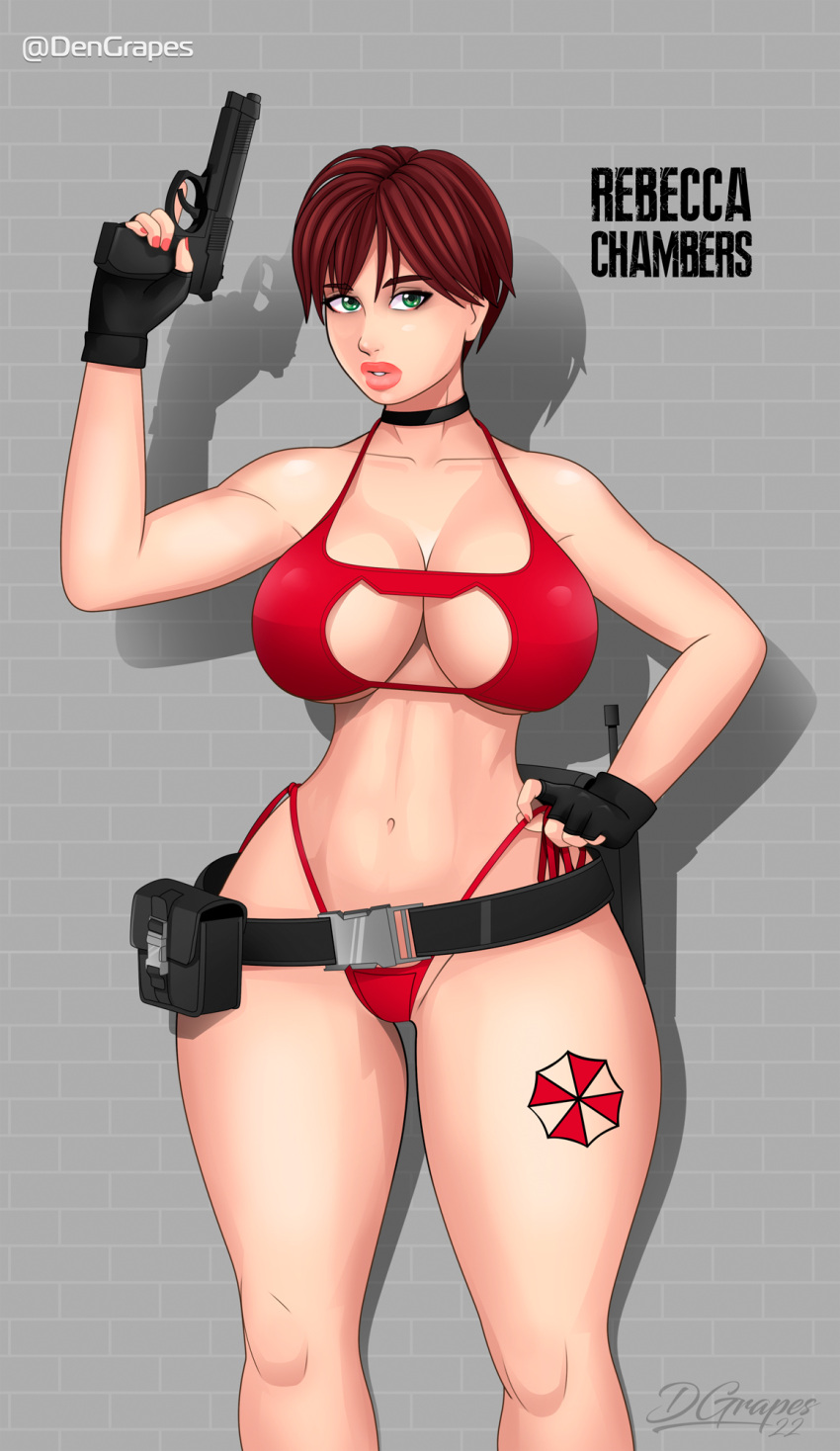 Tags: 1girlsbeltbig breastsbikinibrown haircapcomcasualclothingdengrapesfemalefemale onlyfingerless glovesfirearmgreen eyesgunhand on hiphandgunhandwearhi reshumanimageboardlooking at viewerneckwearpale skinpink lipsrebecca chambersresident evilRule34short hairsoloswimwearthick thighsumbrella corporationweapon