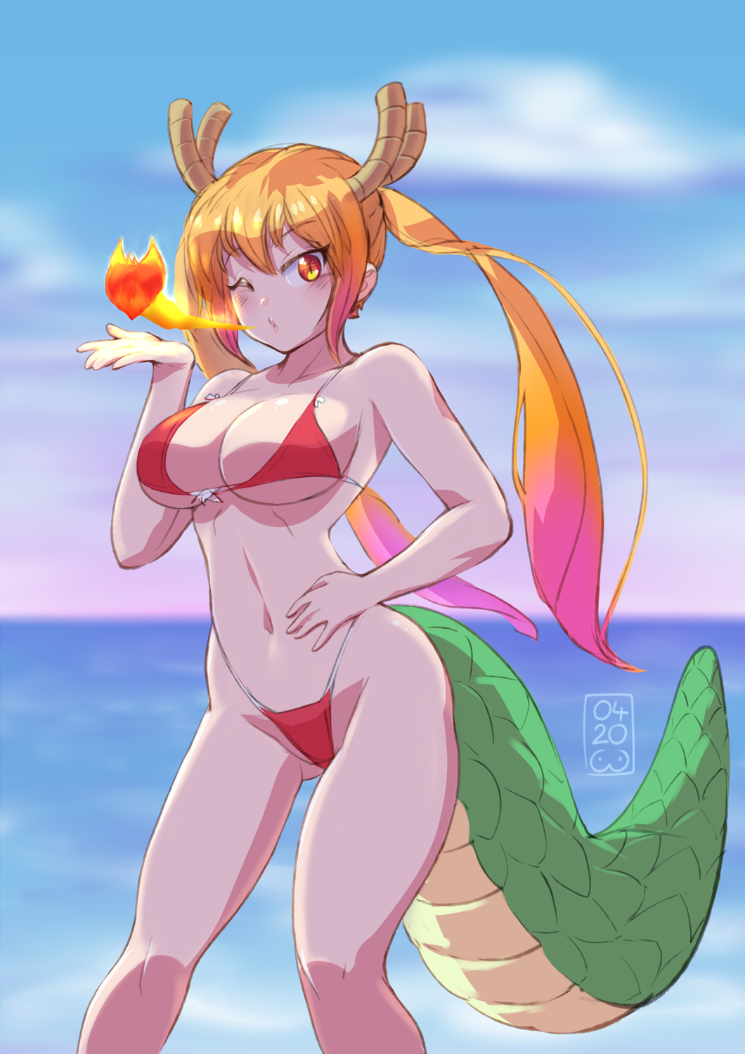 Tags: 1girlsbeachbig breastsbikiniblonde hairbosomforpillowbreastsdragon girldragon hornsdragon tailfemaleheartimageboardmiss kobayashi's dragon maidRule34swimsuittagmetohru (dragon maid)wide hips