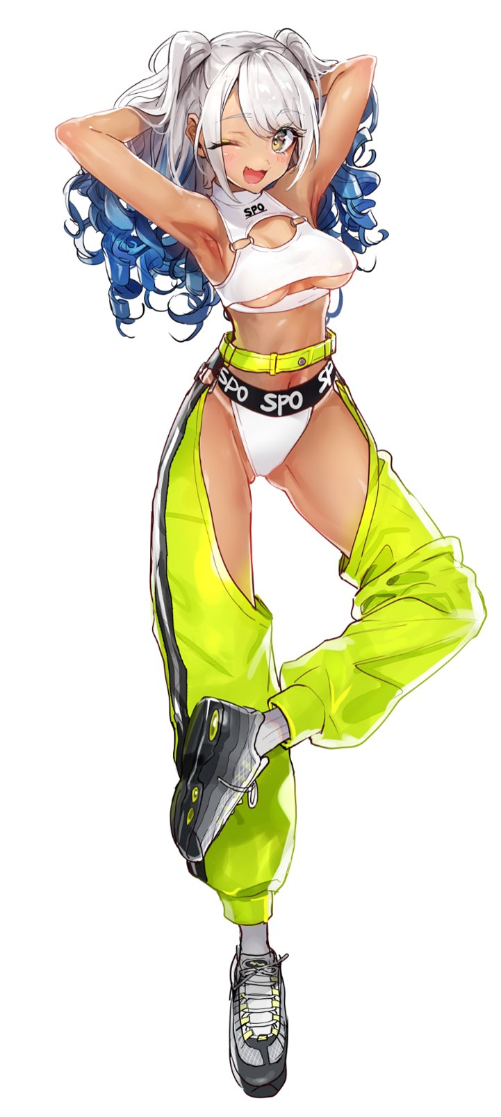 Tags: 1girlsarmpitsassless chapsbangsbelly buttonbeltblue hairblushbreastscleavagecleavage cutoutcrop topcurly hairdark skindark-skinned femalegreen clothinghands behind headimageboardinner thighsmidriffmidriff baring shirtmulticolored hairnavelnavel linenekometaruone eye closedopen clothesopen mouthoriginalRule34sneakersstanding on one legtagmetank toptwintailstwo tone hairunderboobwhite hairwinkwinkingwinking at vieweryellow eyes