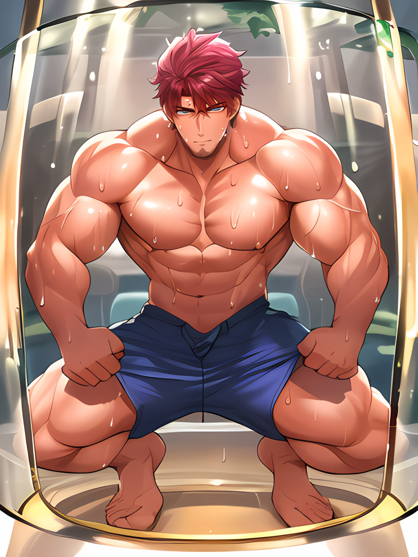 Tags: 1boyabsai generatedbarabicepsblue eyesbulgefacial hairfull bodyimageboardjarlarge pectoralsmale focusmuscularmuscular malenavelnipplespectoralsred hairRule34short hairshortssideburnssolosquattingstable diffusionstomachsweatthick thighsthighstopless maleveins