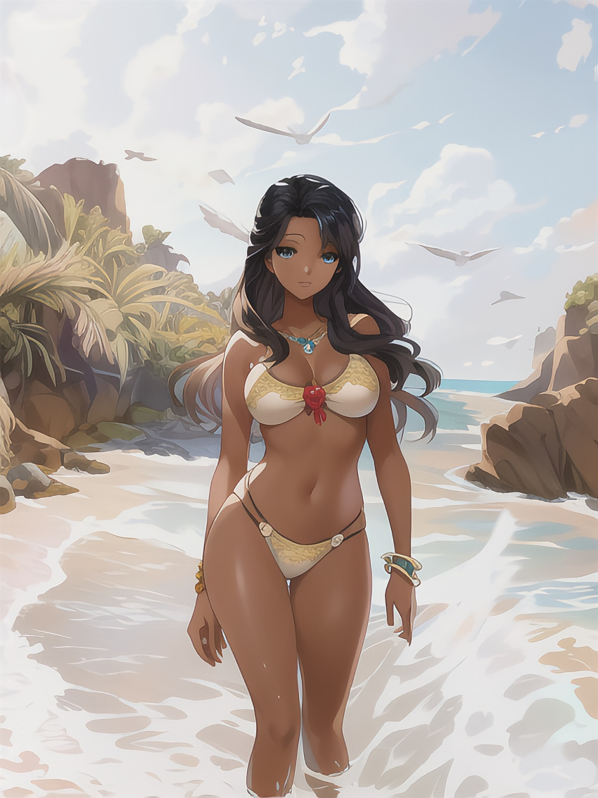 Tags: aiai generatedbeachbikinibikini bottombikini topblack hairblue eyesbraceletbraceletsbrown skindark skindark-skinned femalefemalefemale focusfemale onlyimageboardRule34skywhite bikini