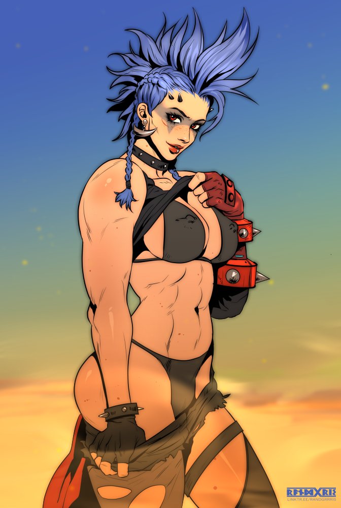 Tags: 1girls2dbikiniblizzard entertainmentblue hairbreastscleavageclothedimageboardjunker queenmohawkmuscularnipples visible through clothingoverwatchrandgrisRule34solostandingtank top lift